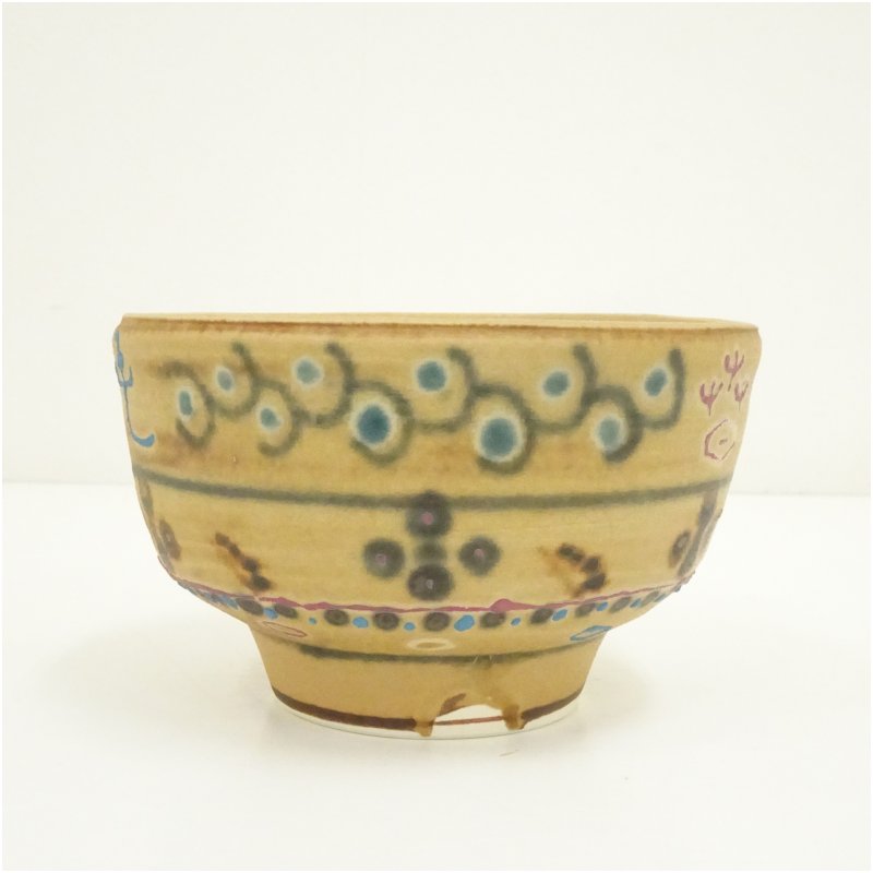 湯之根窯 加藤達次造 色絵奈志茶碗(勅題:春)(共箱) [13-250619c-062a]