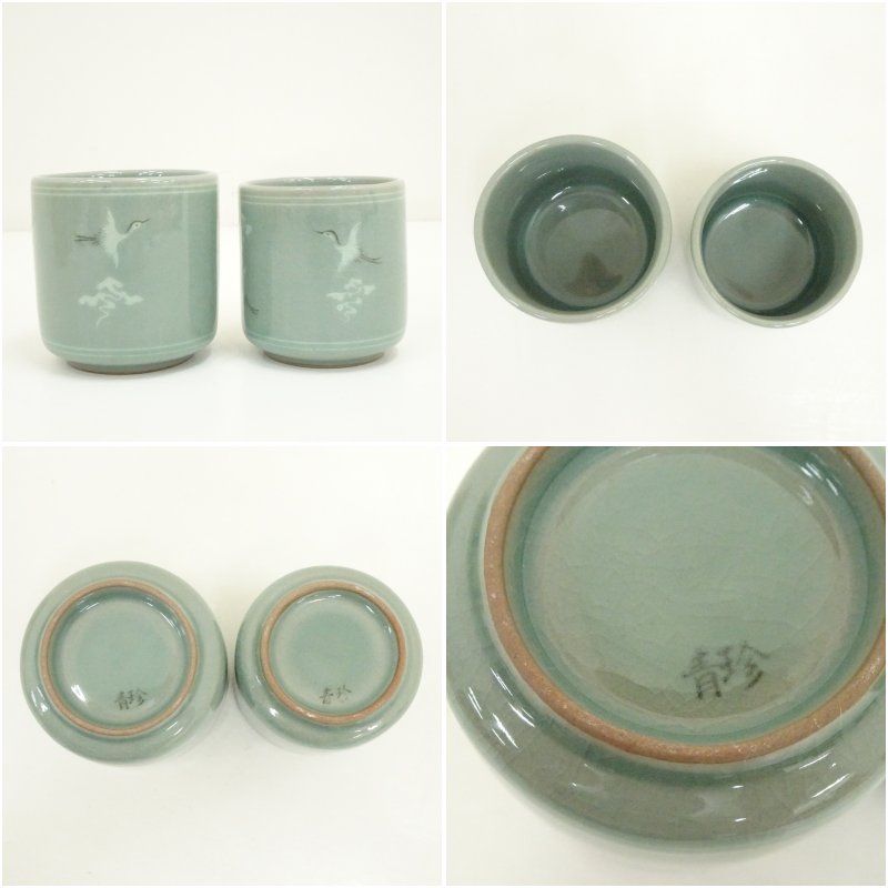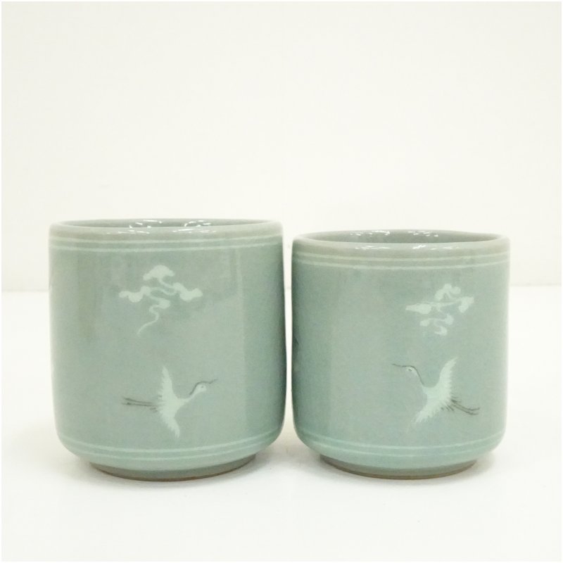 青珍窯 梁命煥造 高麗青磁夫婦茶碗(共箱) [13-250620c-002a]