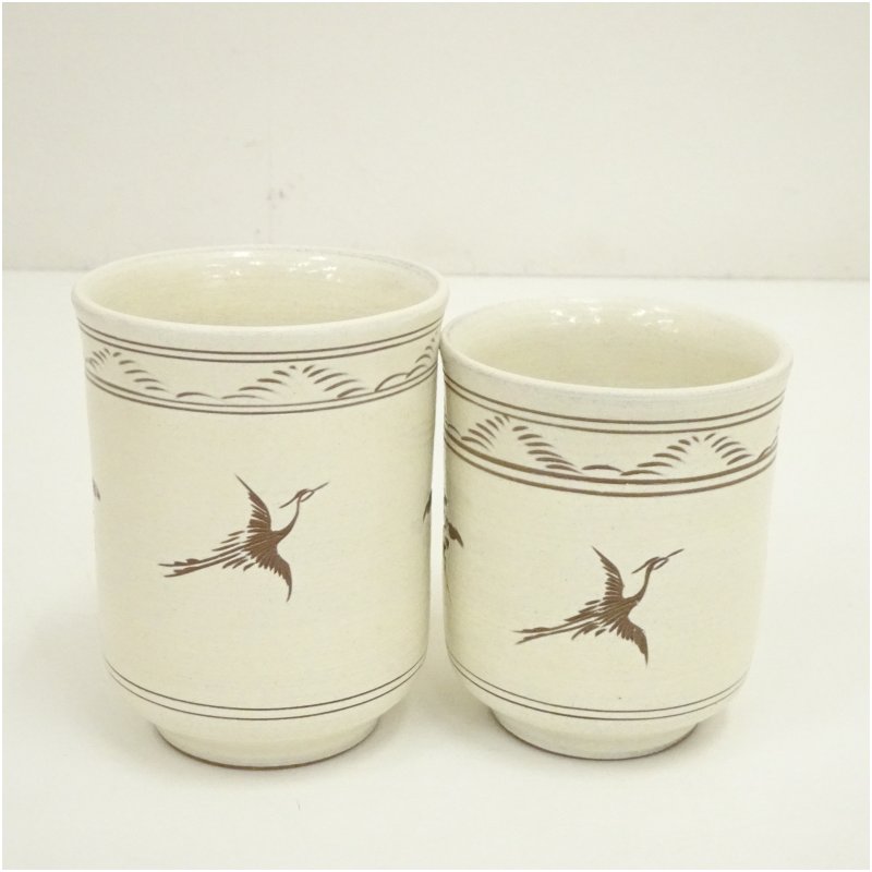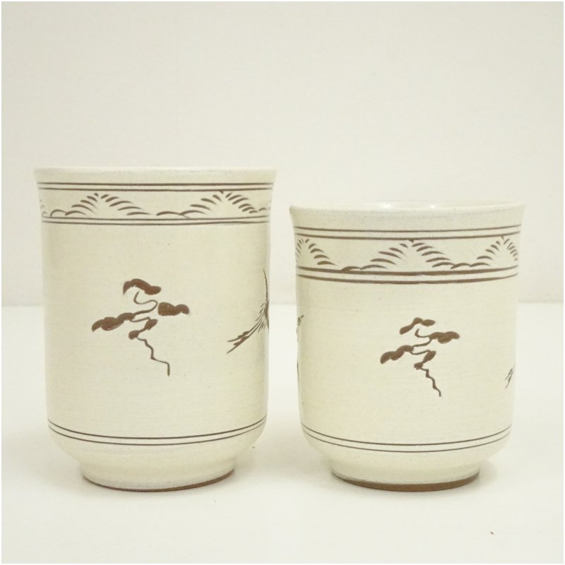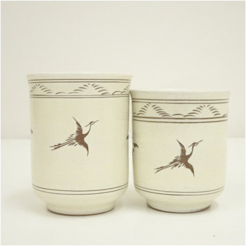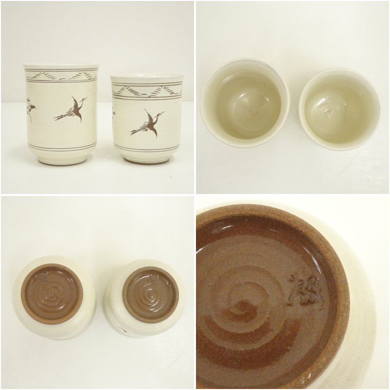 青坡窯 李殷九造 鉄絵夫婦湯呑(共箱) [13-250620c-004a]