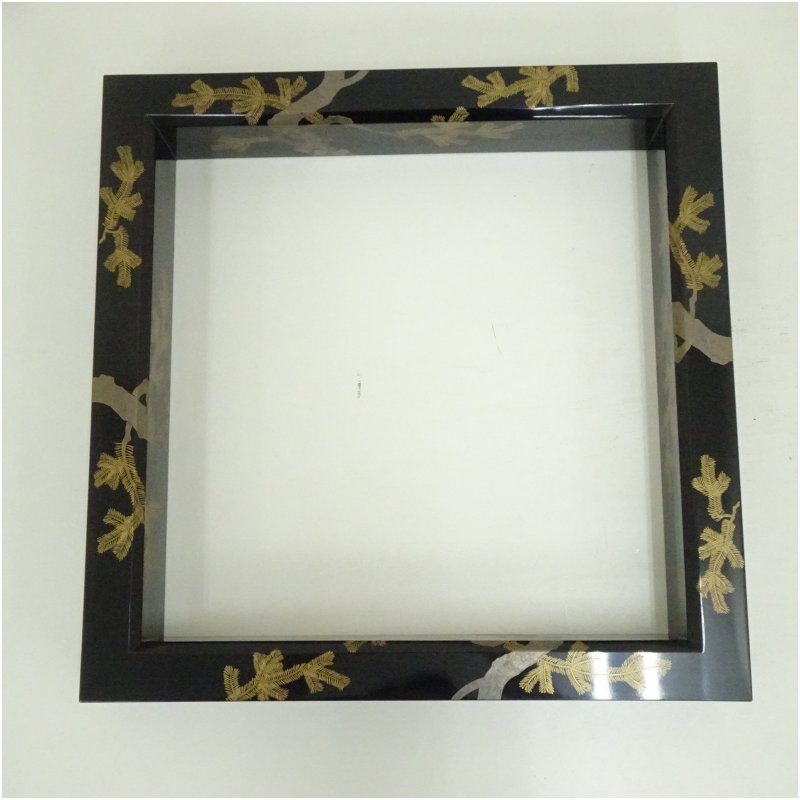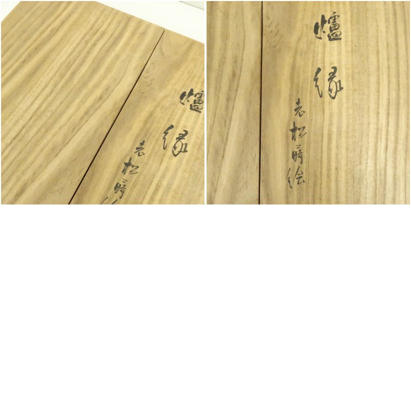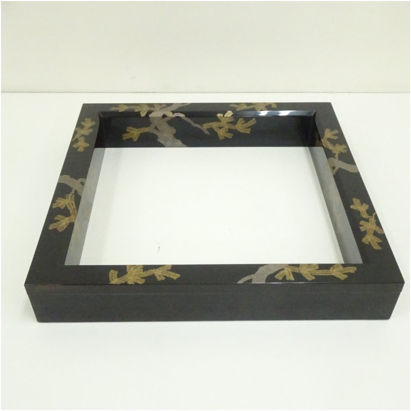 奥津洋方造 漆塗老松蒔絵炉縁(共箱)