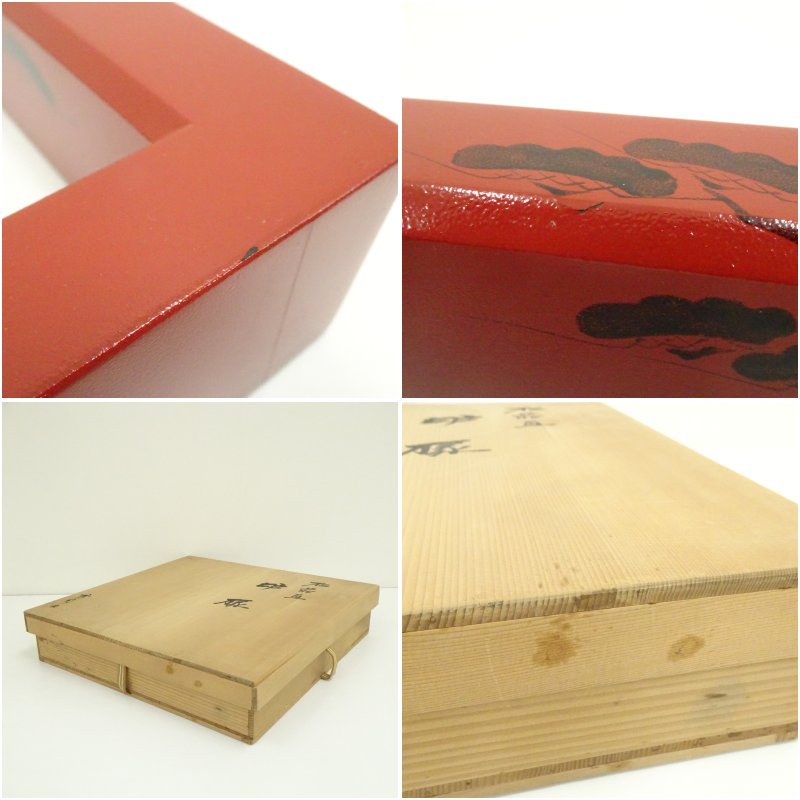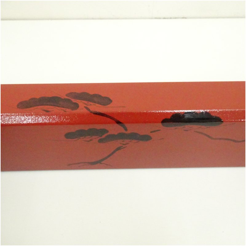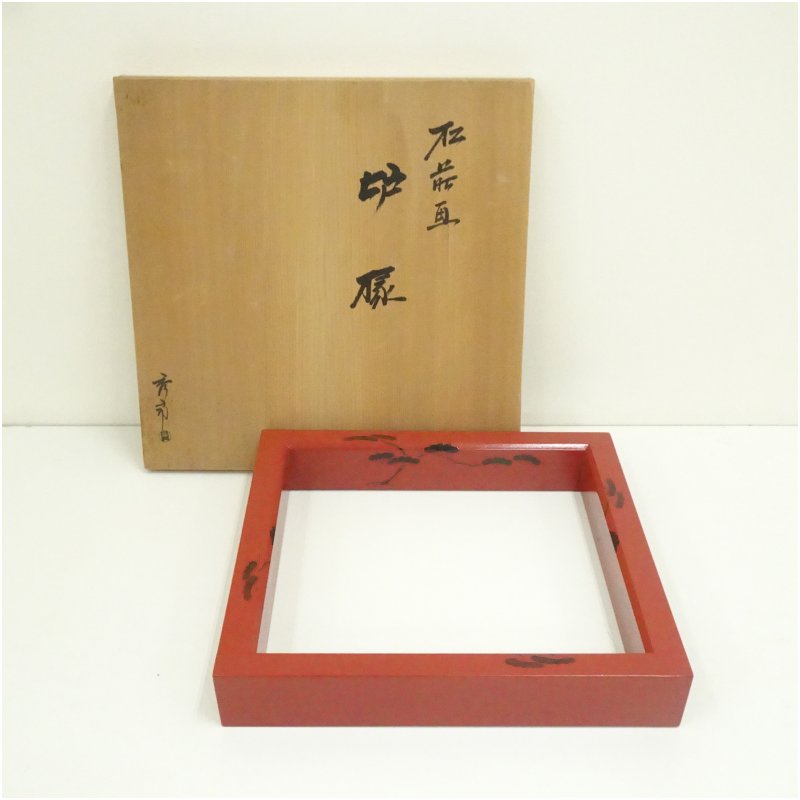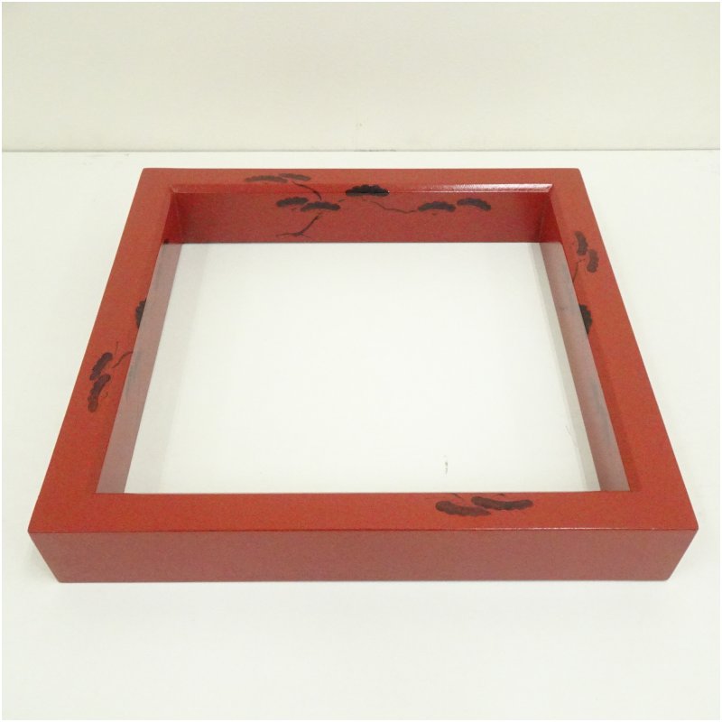 中谷秀斎造 朱漆塗松蒔絵炉縁(共箱) [13-250520c-015a]